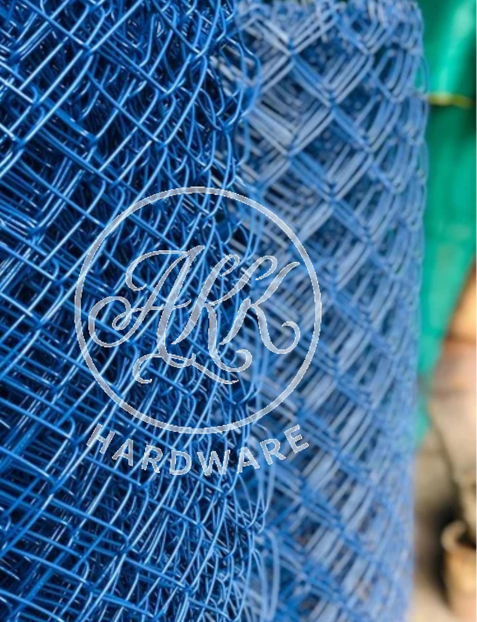 BLUE CHAIN LINK FENCING IS MADE FROM A GALVANIZED STEEL CORE COVERED WITH A PROTECTIVE AND COLORED PVC (POLYVINYL CHLORIDE) COATING.