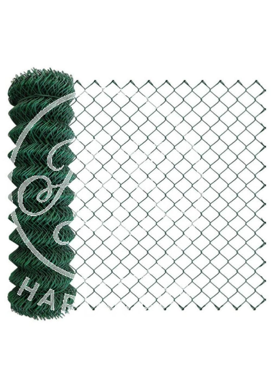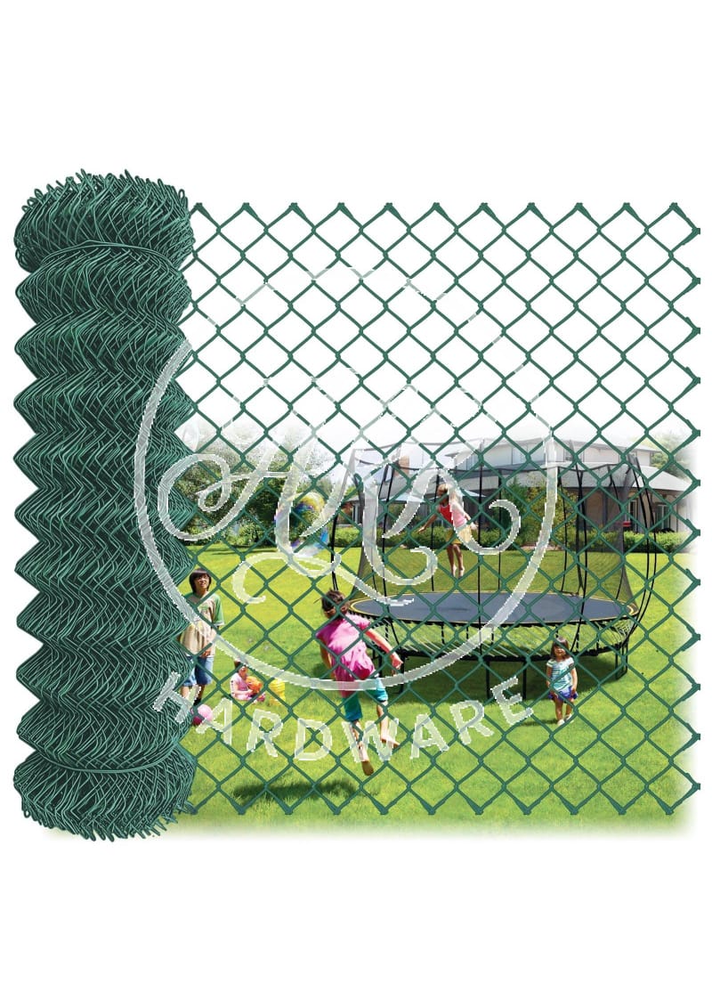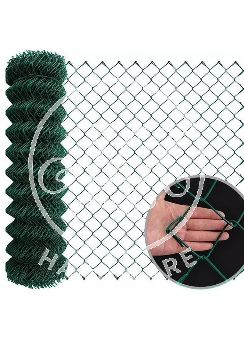 EXPLORE SPECIFICATIONS FOR GREEN PVC COATED CHAIN LINK FENCING, NOTING OPTIONS FOR WIRE DIAMETER, MESH SIZE, HEIGHT, AND ROLL LENGTH: