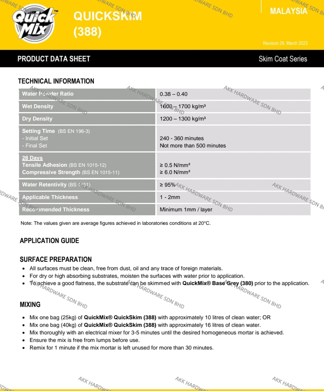 Mixing Ratio: Approx. 8 – 10 liters of clean water per 25 kg bag