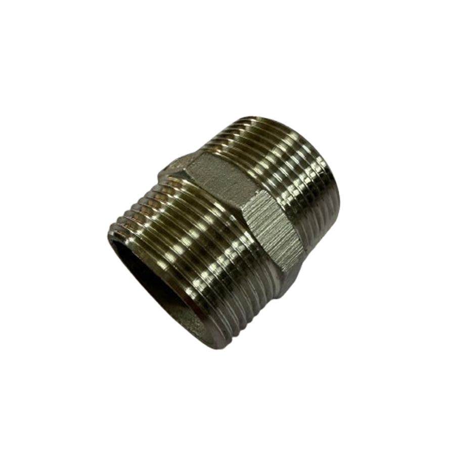 • A short piece of stainless steel pipe with male threads on both ends, used to connect two fittings or extend pipe length.